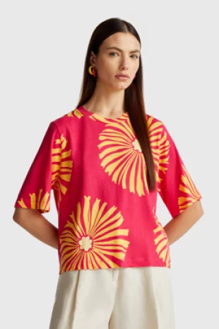 스트라이프 패턴으로 경쾌하게 제안된 반팔 티셔츠.