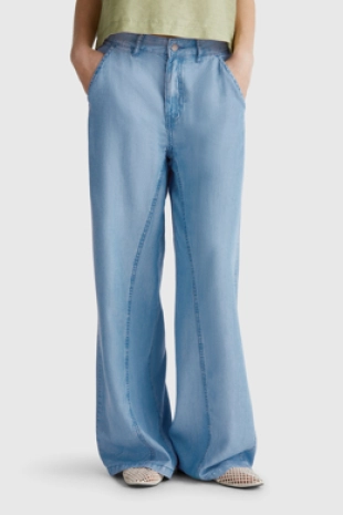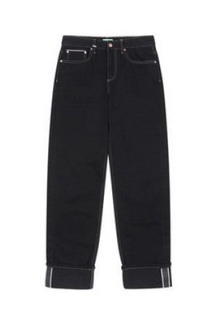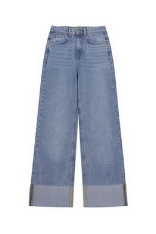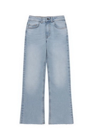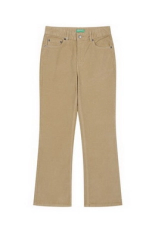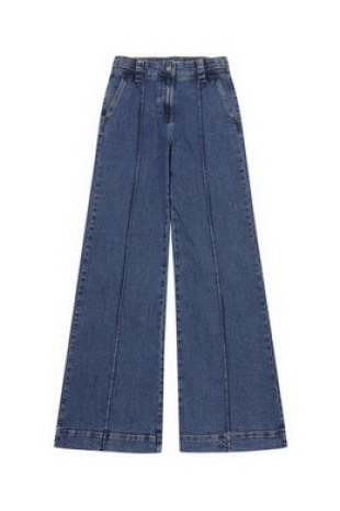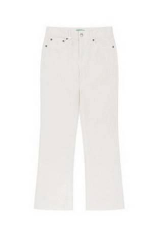 일자로 떨어지는 핏과 와이드한 밑단으로 깔끔한 라인을 연출함.