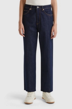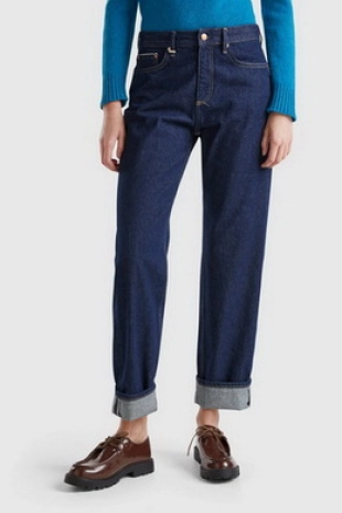 레직기선으로 깔끔하게 제안된 일자핏 데님 팬츠.