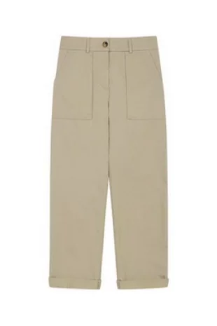 허릿단의 탑 버튼, 지퍼 여밈으로 오픈 클로징이 간편함.
