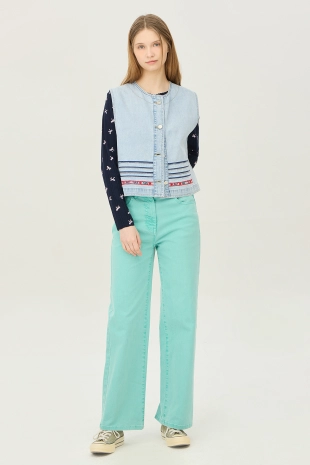 라운드넥에 토글 여밈으로 착용이 간편하며, 포인트를 더해줌.