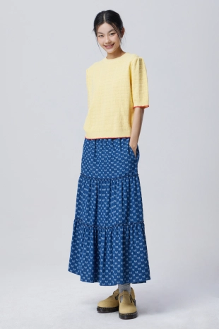 허릿단 백 밴딩에 사이드 상단 지퍼 여밈으로 오픈 클로징이 간편함.