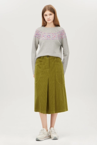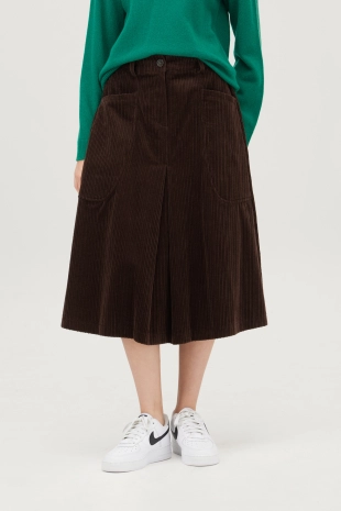 차분한 컬러감과 고급스러운 체크 패턴이 돋보이는 A라인 스커트.