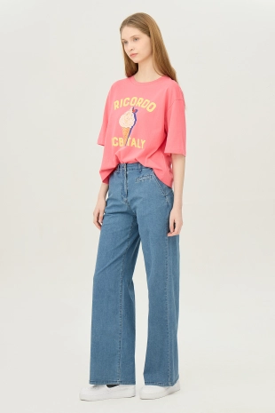 핀턱을 잡아 밑단까지 깔끔하게 통일자로 떨어지는 데님 팬츠.