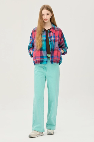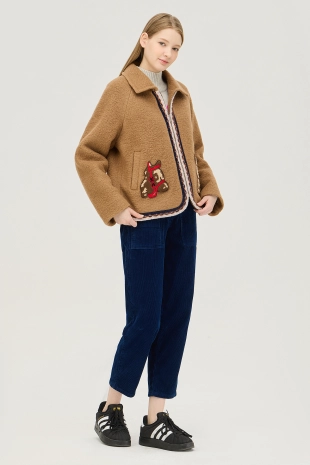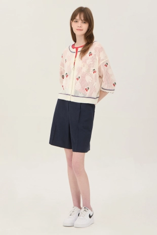 니트 배색과 자수로 포인트를 준 블루종 스타일의 집업 점퍼.