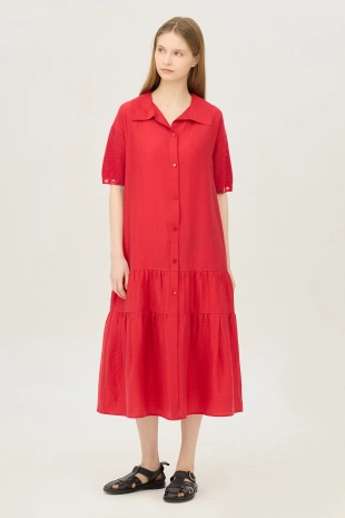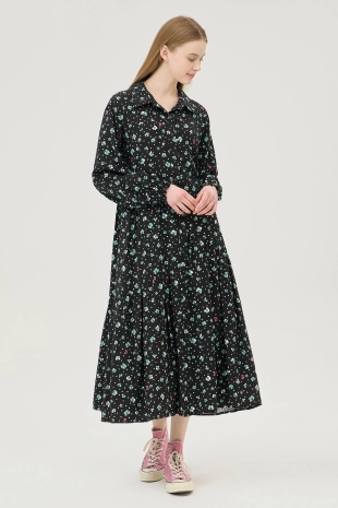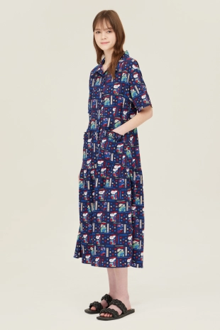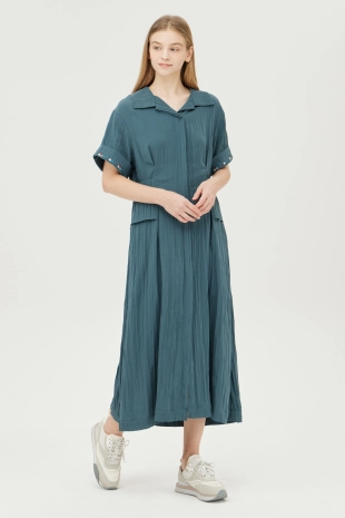 허릿단 백 밴딩과 풀 버튼 여밈으로 오픈 클로징이 간편함.