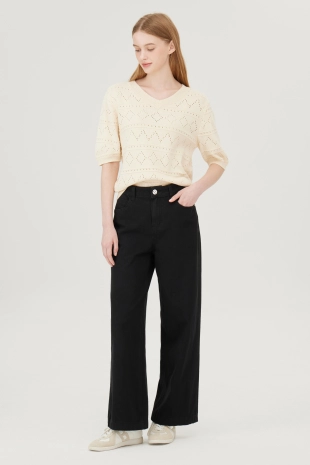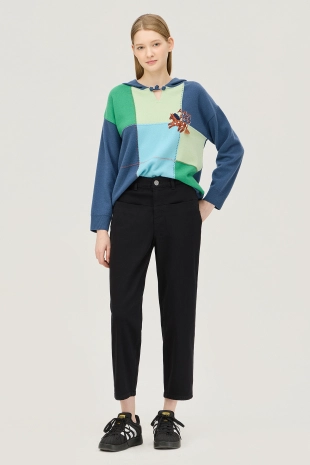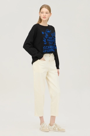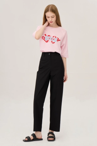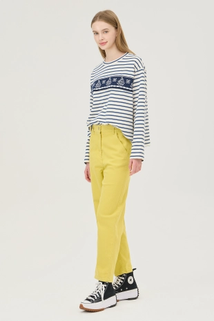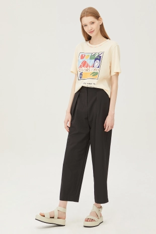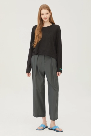 텐션감이 우수한 배기핏으로 편안하게 제안한 코튼 팬츠.