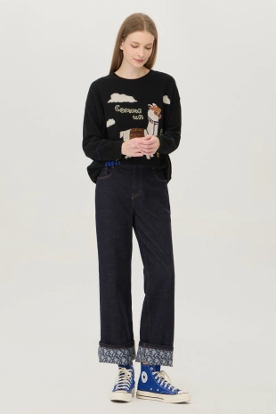 인타샤를 적용하여 부클 텍스쳐의 레터링 자수를 더한 니트.