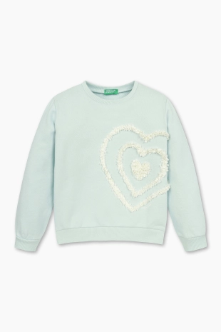 타이다이 염색 패턴이 돋보이는 맨투맨 티셔츠.