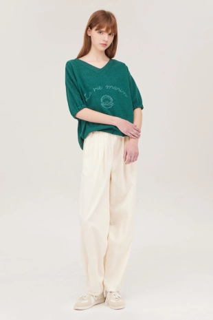 허릿단의 탑 버튼과 지퍼 여밈으로 편안하게 착용이 가능함.
