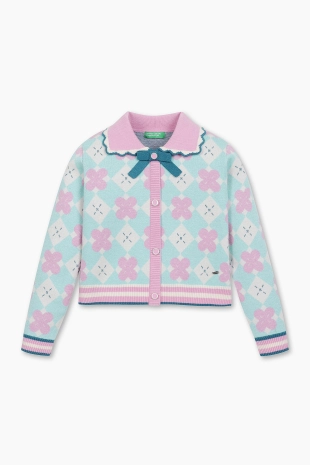 클로버 모노그램 쟈가드 패턴이 돋보이는 니트 가디건.