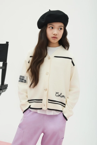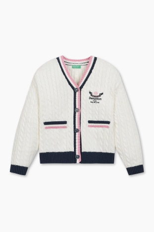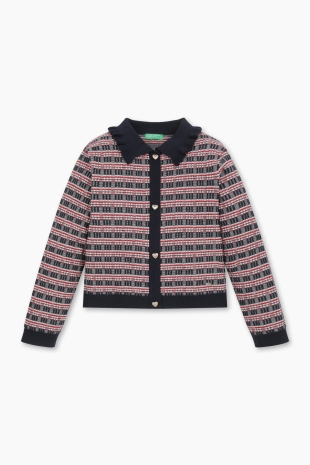 변형조직 스트라이프의 마린스타일 세일러 카라 가디건.