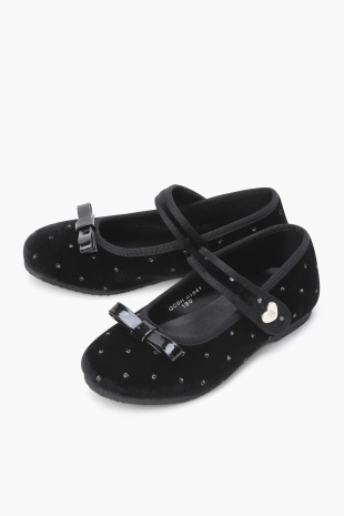 블링블링한 스팽글에 쁘띠 리본이 포인트된 메리제인 구두.