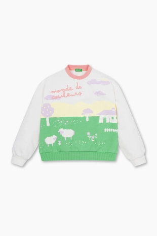유니 스타일로 착용 가능하며, 컬러풀한 그래픽이 포인트.