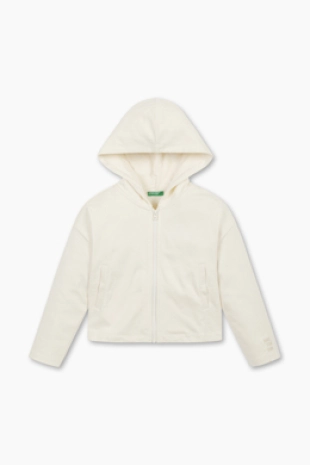 러블리한 레이스 소재로 제안된 후드 점퍼.