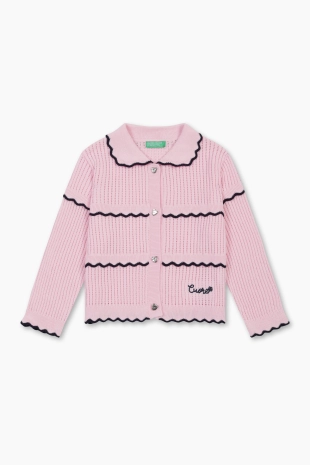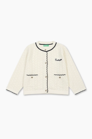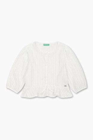 부드러운 레이스 소재와 러블리한 아일렛 플리츠 카라가 포인트.