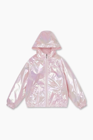 글로시한 소재감으로 은은한 광택감이 돋보이는 후드 점퍼.