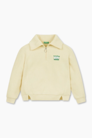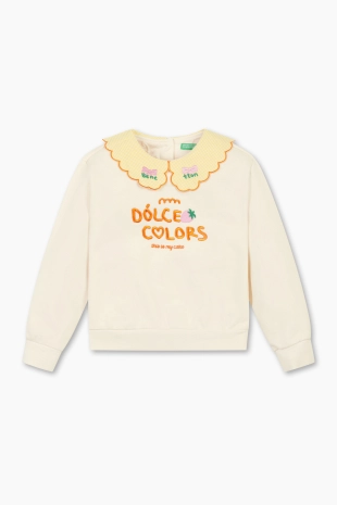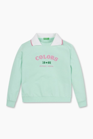 배색 카라 디테일로 포인트를 준 맨투맨 티셔츠.