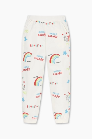 베네통 키즈만의 컬러감이 돋보이는 프린트 트레이닝 팬츠.