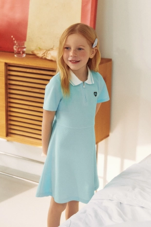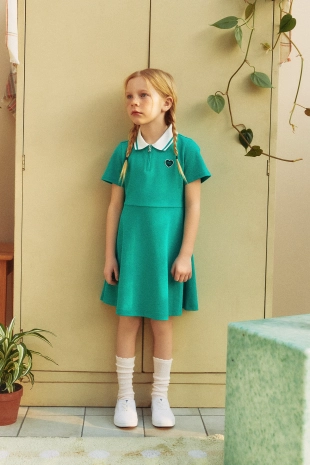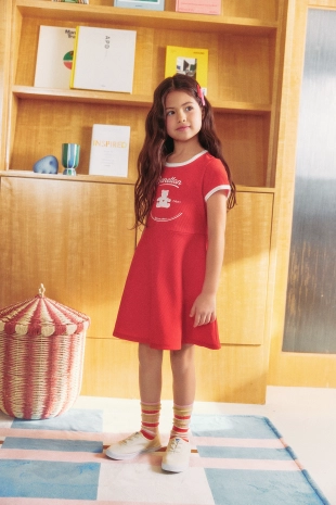 귀여운 곰돌이 그래픽으로 포인트를 준 와플 원피스.