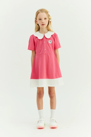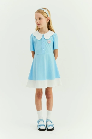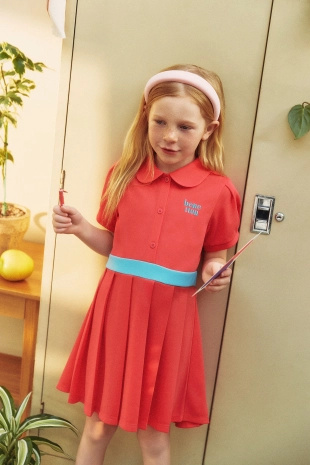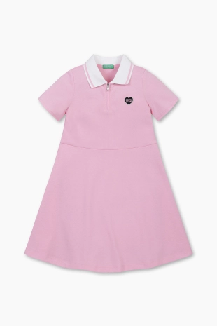 스포티하면서도 발랄한 무드가 돋보이는 카라 집업 원피스.