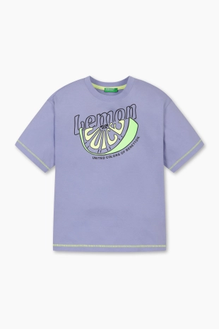 상큼한 컬러감이 돋보이는 과일 프린트 반팔 티셔츠.
