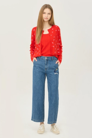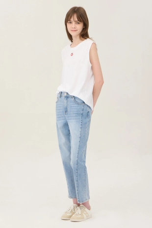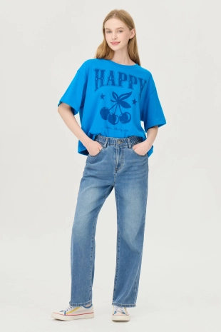 허리 라인에 인밴딩을 적용하여 사이즈 조절이 되는 데님 팬츠.