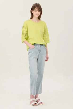 적당한 워싱과 베이직한 핏으로 다양한 활용이 가능함.