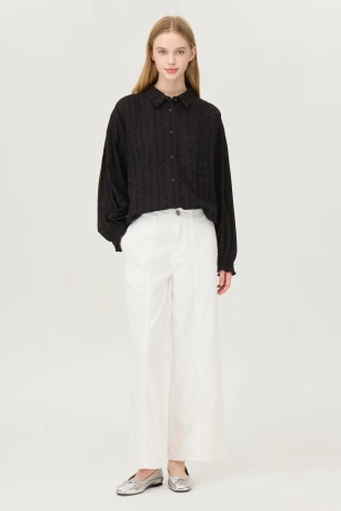 자켓형 디자인으로 캐주얼한 무드와 정돈된 아웃핏을 겸비함.