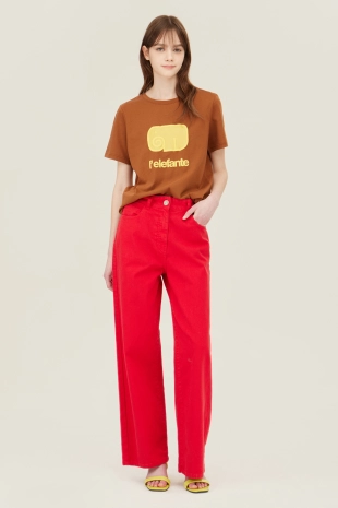 비비드한 체리 배색으로 포인트를 준 크롭기장 니트 가디건.