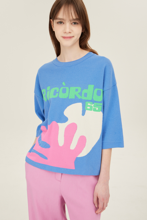 컬러 인타르시아 디테일로 다채롭게 표현된 니트 풀오버.