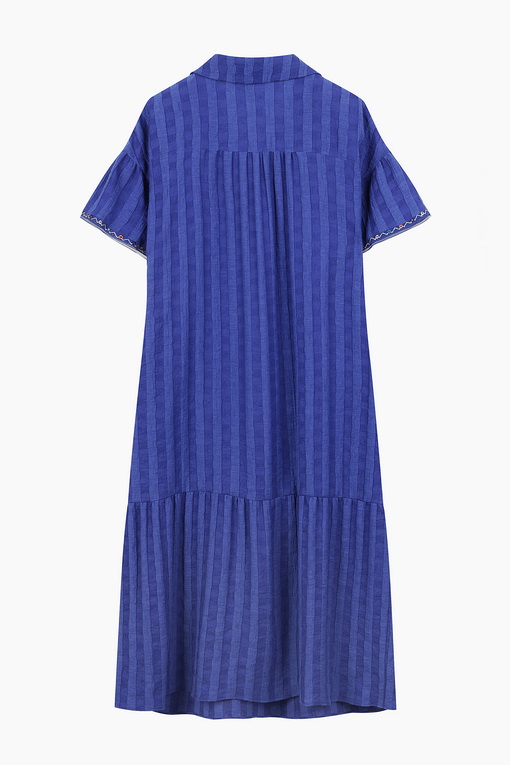 스트라이프 엠보 디자인으로 입체감을 살린 티어드 롱 원피스.