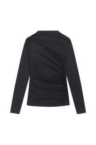 보트넥에 네크라인을 따라 숄더 크로스 디테일을 더해줌.