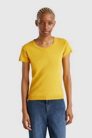 솔리드한 컬러로 깔끔한 무드가 돋보이는 슬럽 반팔 티셔츠.