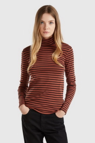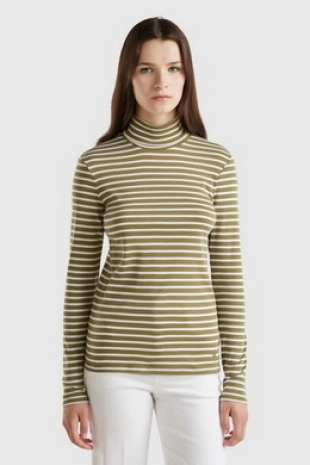스트라이프 패턴이 경쾌한 무드를 연출하는 7부 티셔츠.
