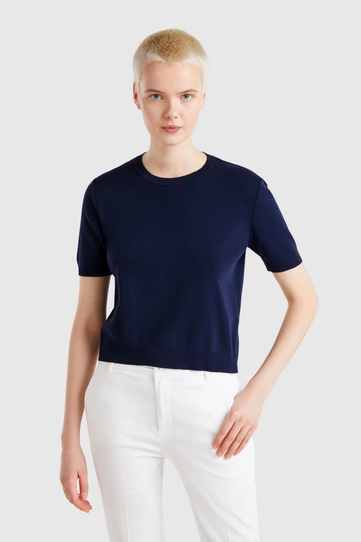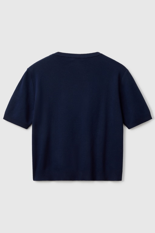 깔끔한 디자인으로 데일리한 코디가 가능한 크롭 반팔 니트.
