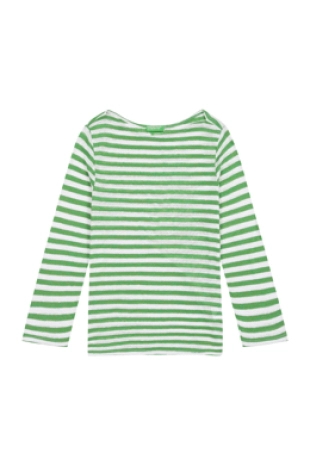 스트라이프 패턴이 경쾌한 무드를 연출하는 7부 티셔츠.