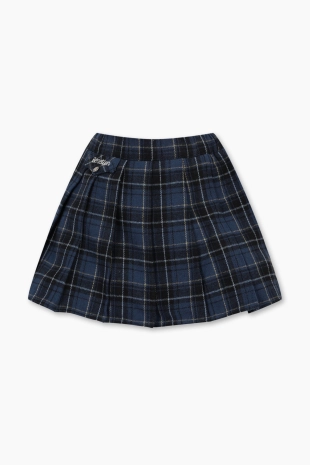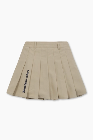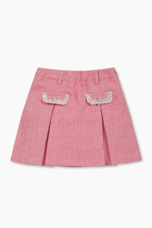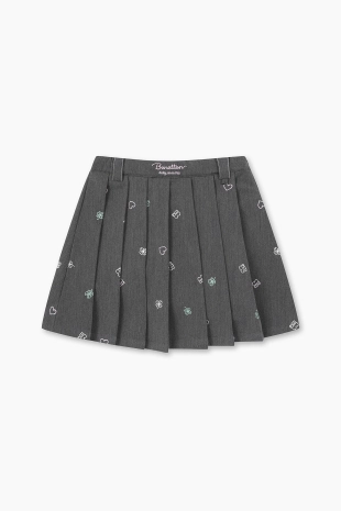 허릿단과 뒷면 포켓 실버 자수로 포인트를 준 플리츠 스커트 팬츠.