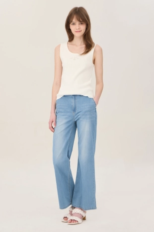 오각 포켓 디자인에 라인 디테일로 포인트를 준 데님 팬츠.