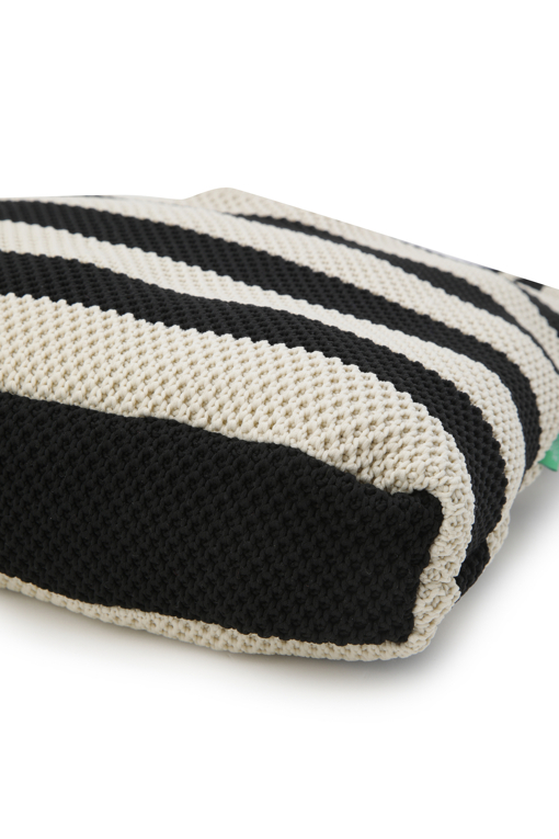 경쾌한 컬러감의 스트라이프 패턴이 돋보이는 크로셰 쇼퍼백.
