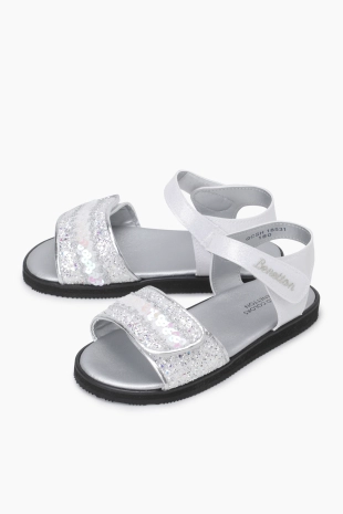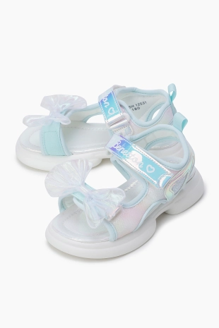 그라데이션 글리터 스팽글 소재로 제안된 블링한 무드의 샌들.