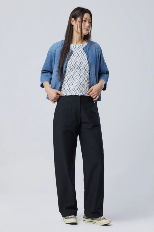 여유있는 핏과 크롭 기장감으로 캐주얼한 무드가 느껴지며,