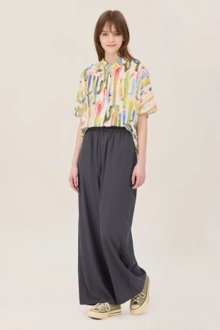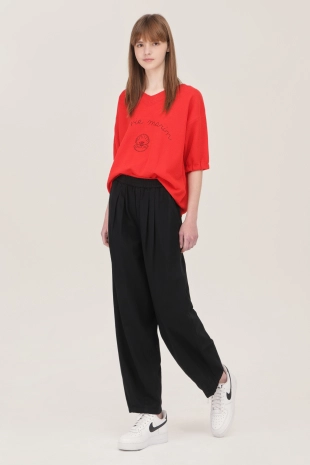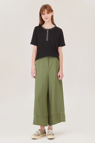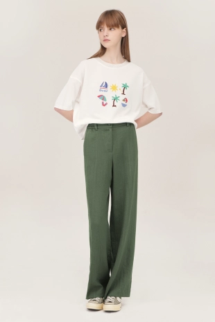 여유있는 와이드 핏으로 깔끔한 실루엣을 연출하여줌.