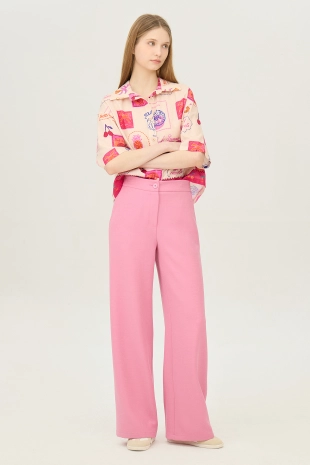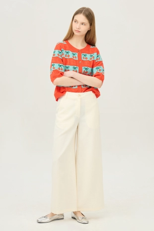 허릿단 백 밴딩과 탑 버튼, 지퍼 여밈으로 탈착장이 간단함.