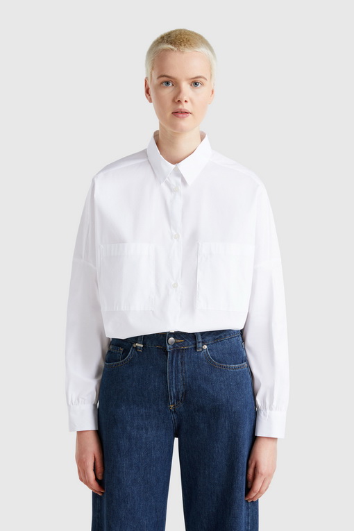 가슴판의 포켓으로 포인트를 준 베이직한 카라 셔츠.