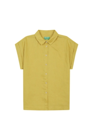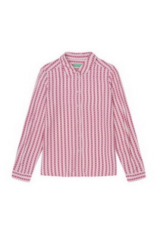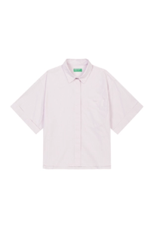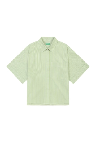 배색 스트라이프 라인이 돋보이는 크롭 긴팔 셔츠.