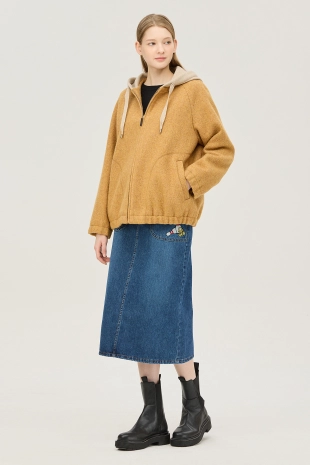 밑단에 배색 자수 디테일로 컬러 포인트를 더해줌.