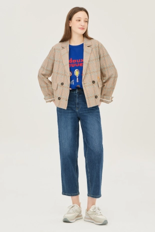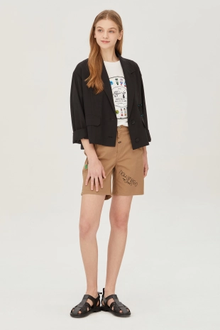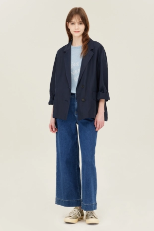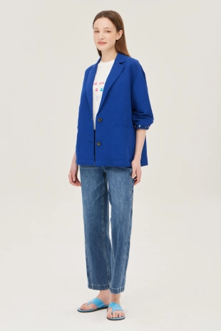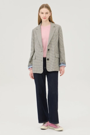 싱글 브레스티드 1버튼 여밈으로 탈착장이 간편함.