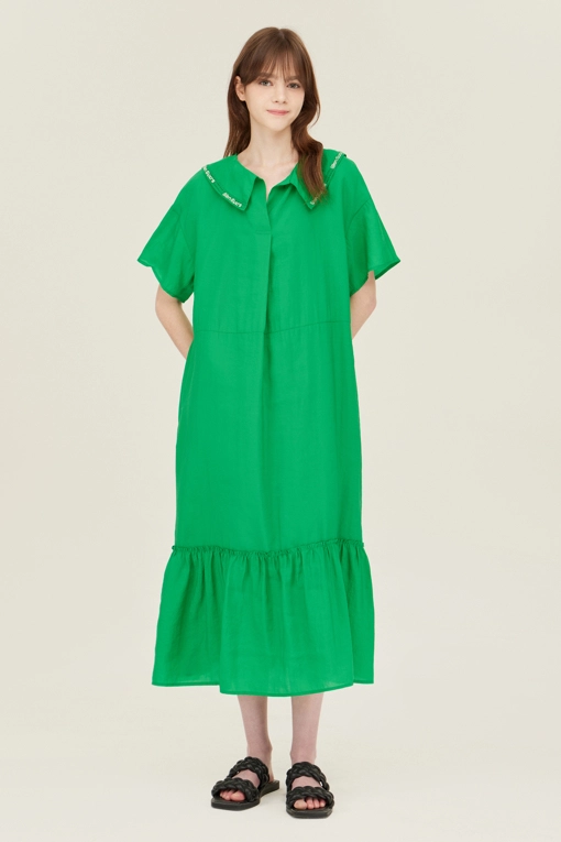 크로셰 라인으로 마감된 카라 디자인으로 포인트를 준 원피스.