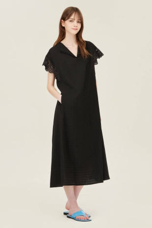 A 라인으로 플레어지는 밑단으로 체형 보정에 용이함.